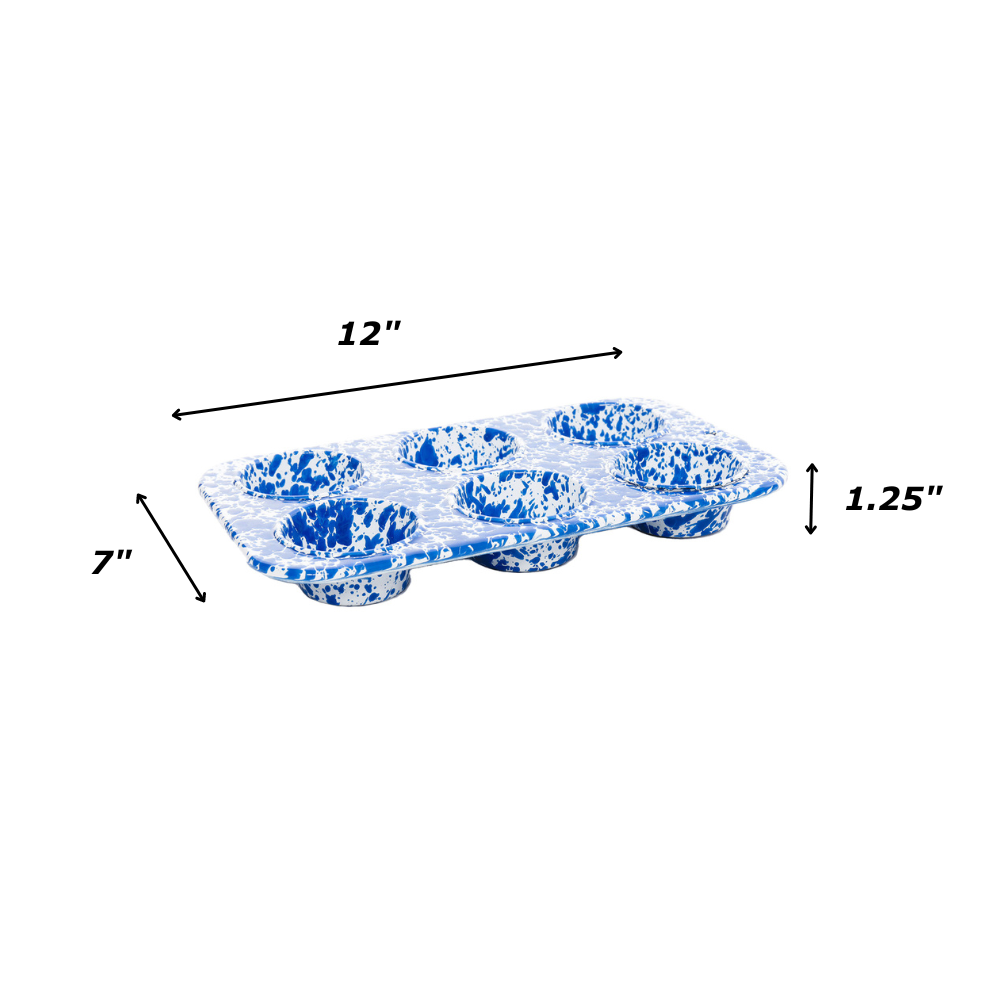 Our Splatter enamelware 6 Cup Muffin Tin is a classic must have for your bakeware collection. This piece is highly durable and provides an even-heating design resulting in the perfectly baked muffins and cupcakes.