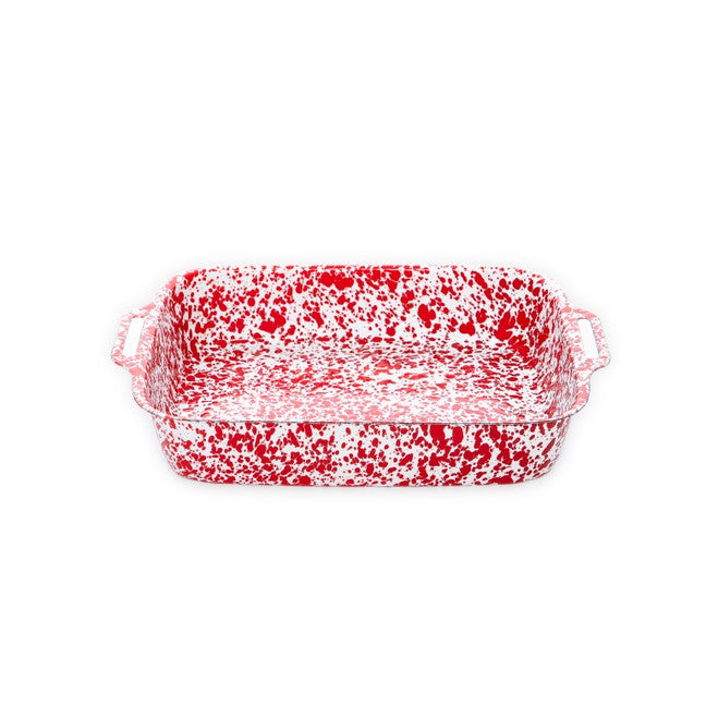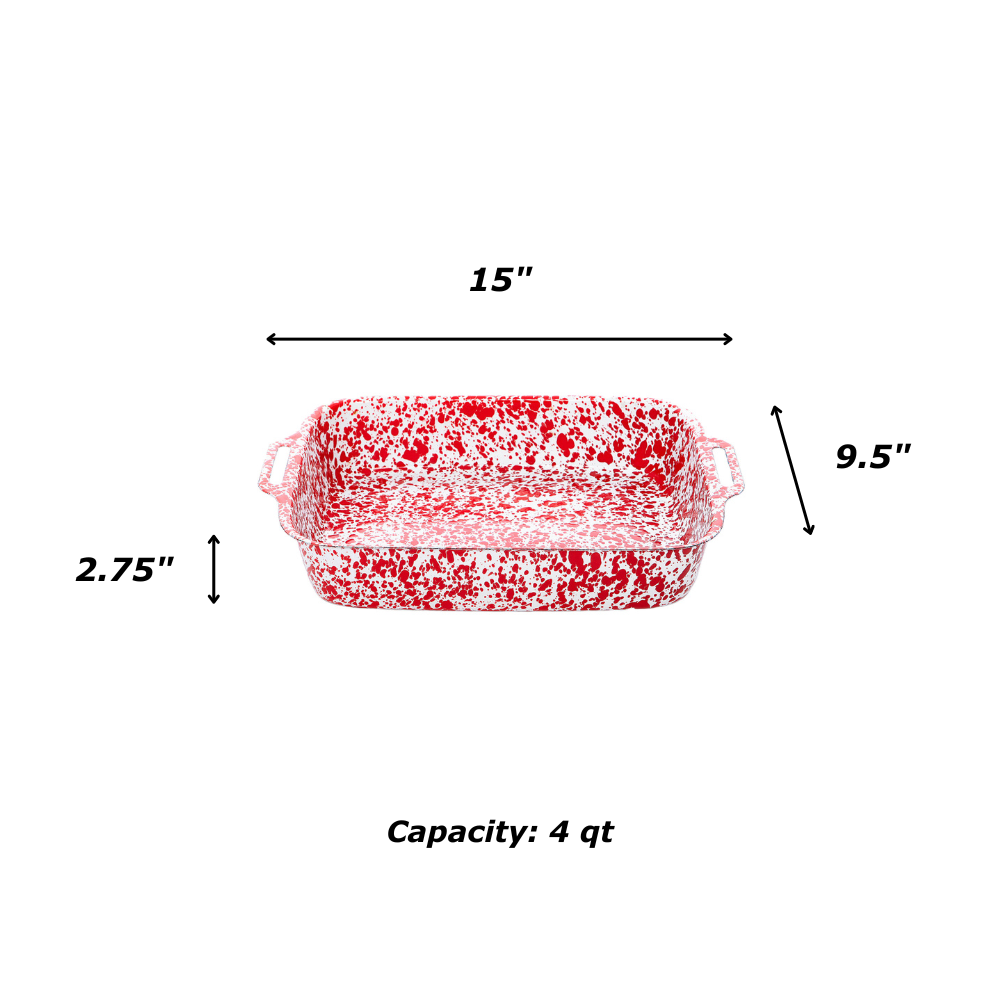 Are you curious about what the best size pan for lasagna is? Our Splatter enamelware Lasagna Pan is deep enough for layering without the worry of spillage or noodles overlapping. This pan is durable and functional enough to bring you from oven to tabletop with ease.