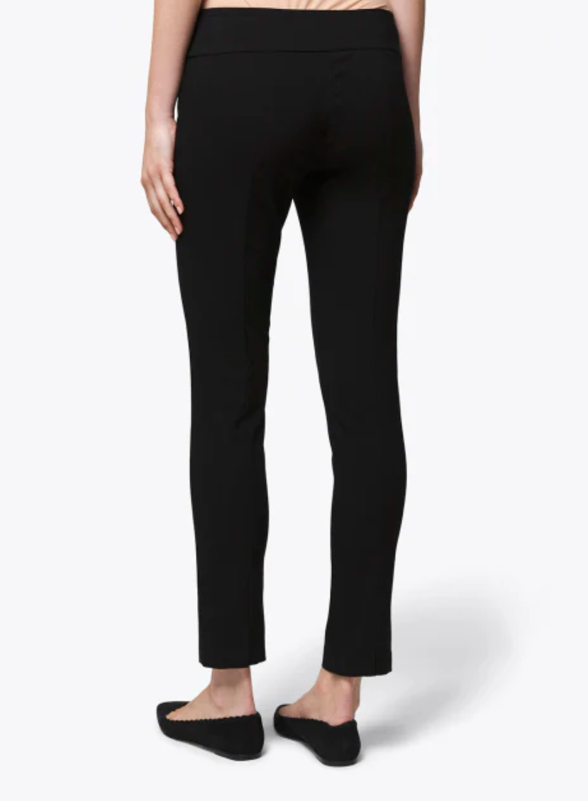 Elliott Lauren designs for the woman who seeks on-trend pieces without compromising on quality and fit. These navy pants have a simple, versatile pull-on style with a flat elastic waistband. Thanks to the slim fitting stretch composition, the pants fit close, while maintaining a lean silhouette. Named the "Miracle Pant" by a renowned stylist, Tina Adams, this timeless piece pairs nicely with everything from tunics to sweaters.