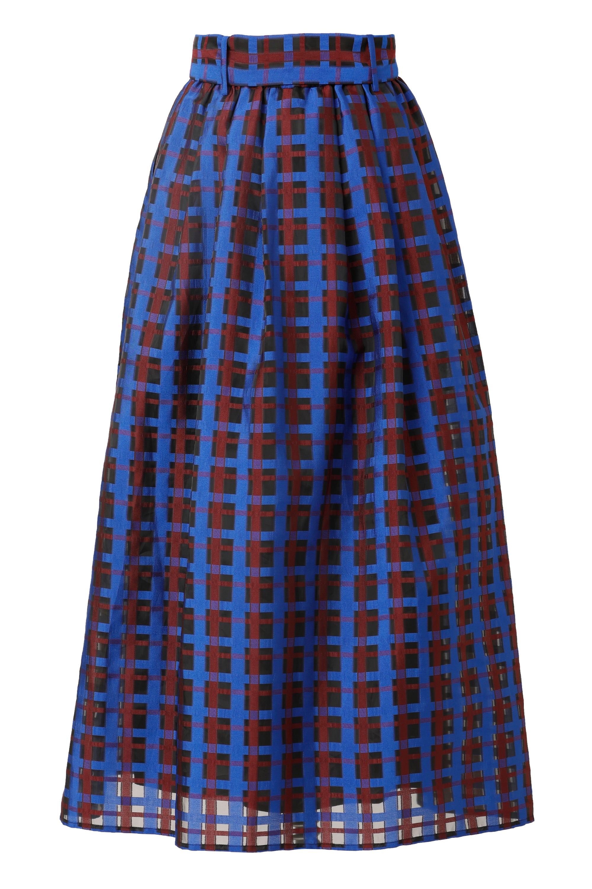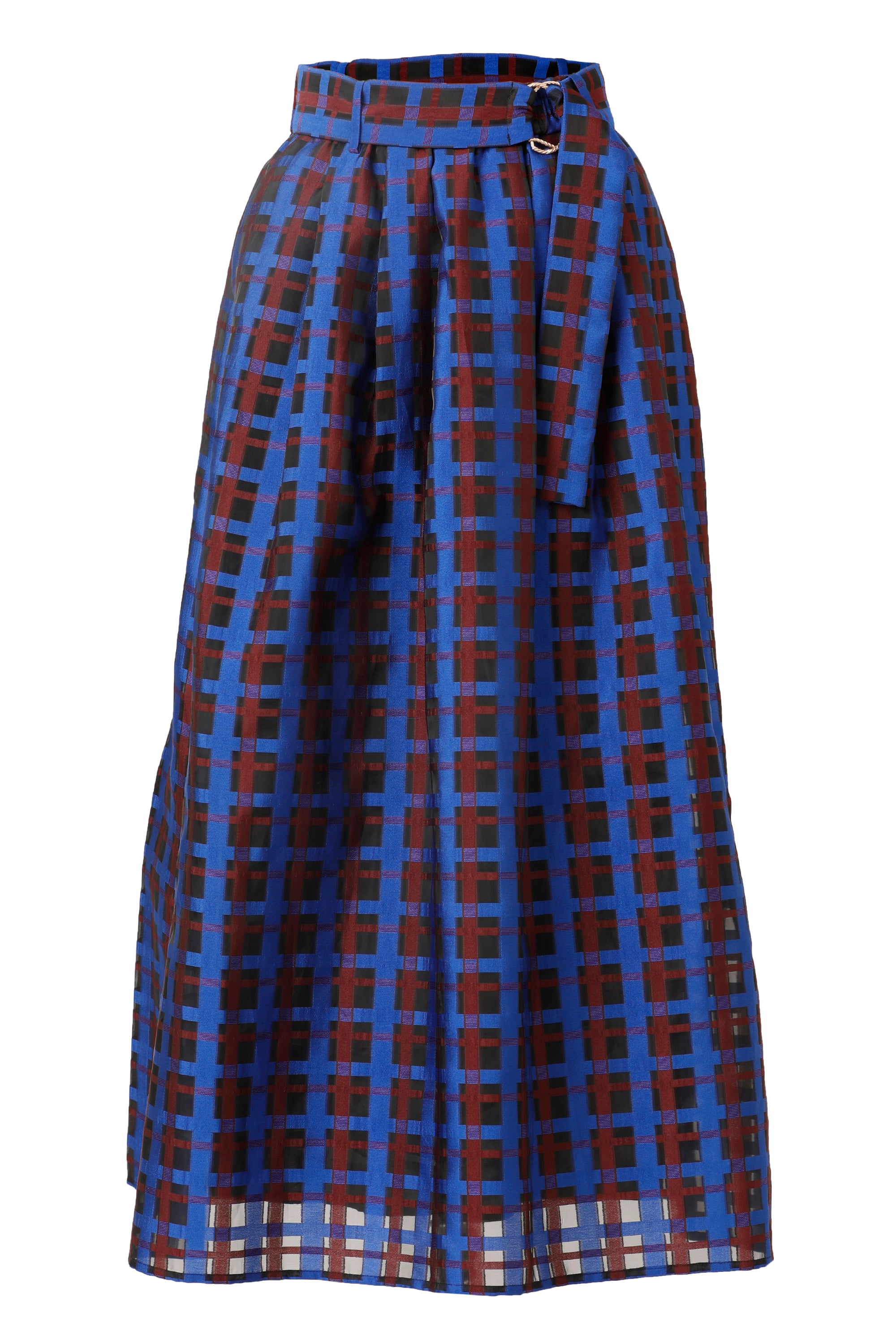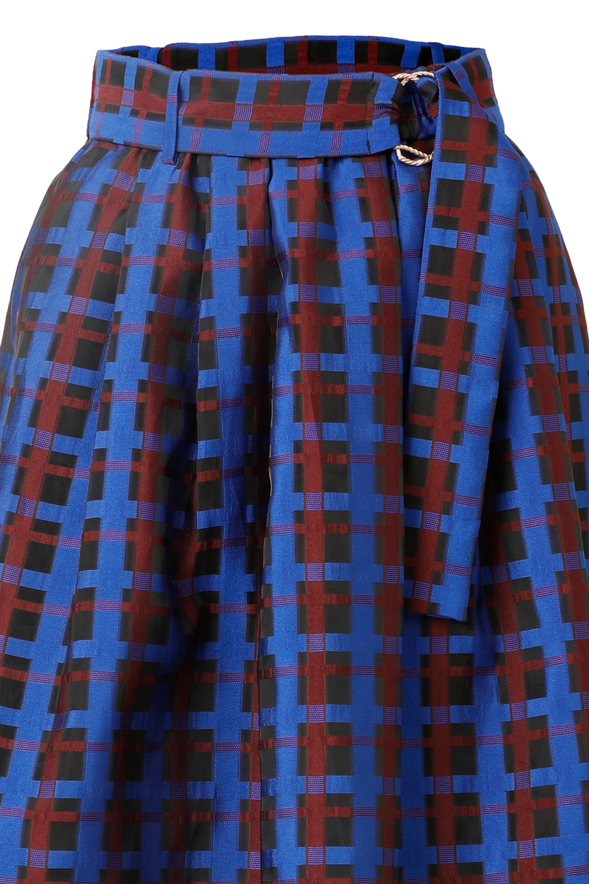 Turn heads with the Maya Skirt in Electric Indigo, featuring a bright blue base accented by a fun red checkered pattern. This playful skirt comes with a matching belt to cinch your waist perfectly, while its lightweight fabric keeps you comfortable all day long. Ideal for adding a pop of color and cheerful vibe to any outfit!