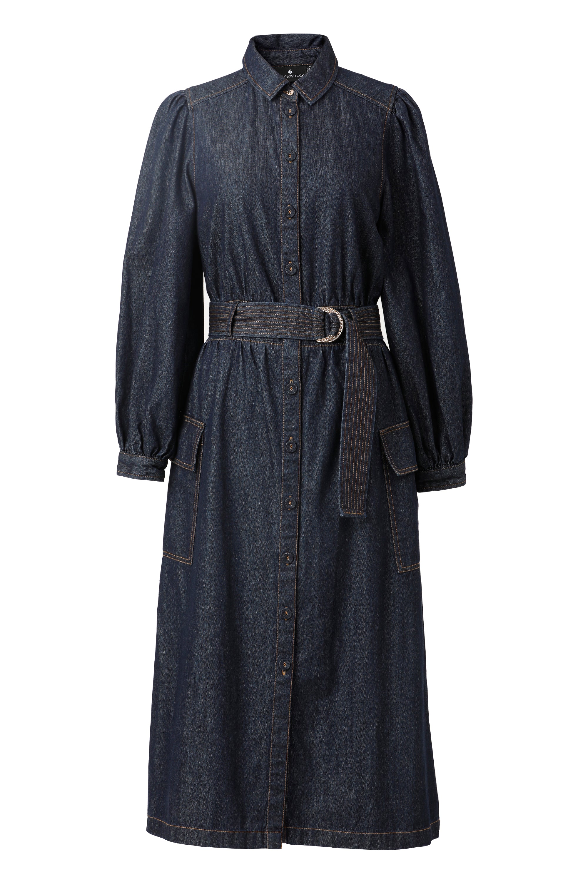 The Melvina Dress brings fun to your wardrobe with its playful denim design and flattering full-length buttoned closure. Featuring handy side pockets and a stylish belt that cinches at the waist, this dress combines comfort with a touch of flair. Perfect for casual days when you want to feel effortlessly chic!