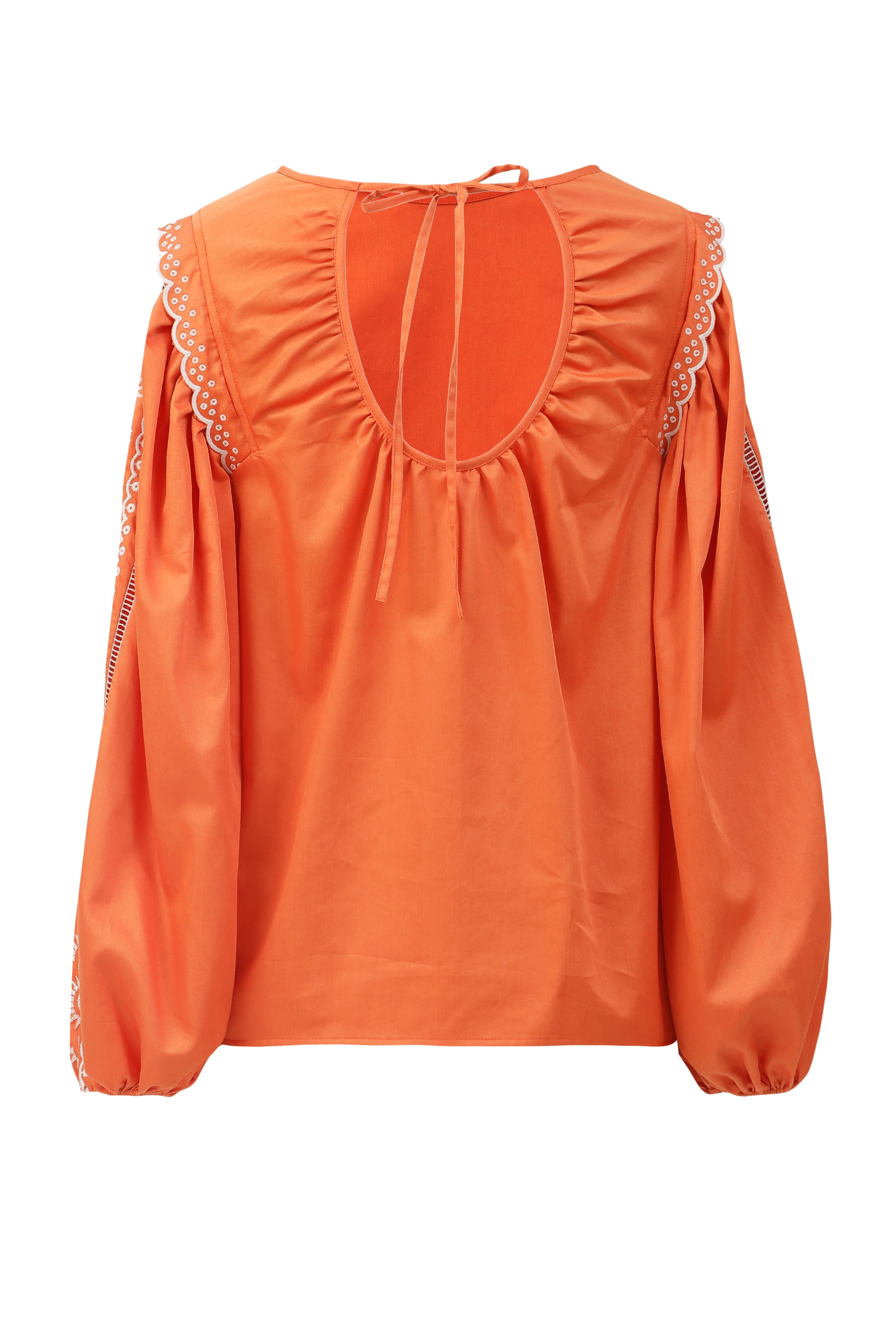 Add a burst of sunshine to your wardrobe with the Nora Embroidered Blouse. Featuring bright orange fabric and intricately embroidered sleeves, it brings fun and flair to any outfit. The tied-back neck adds a charming, flirty touch, perfect for playful days and lively evenings alike.