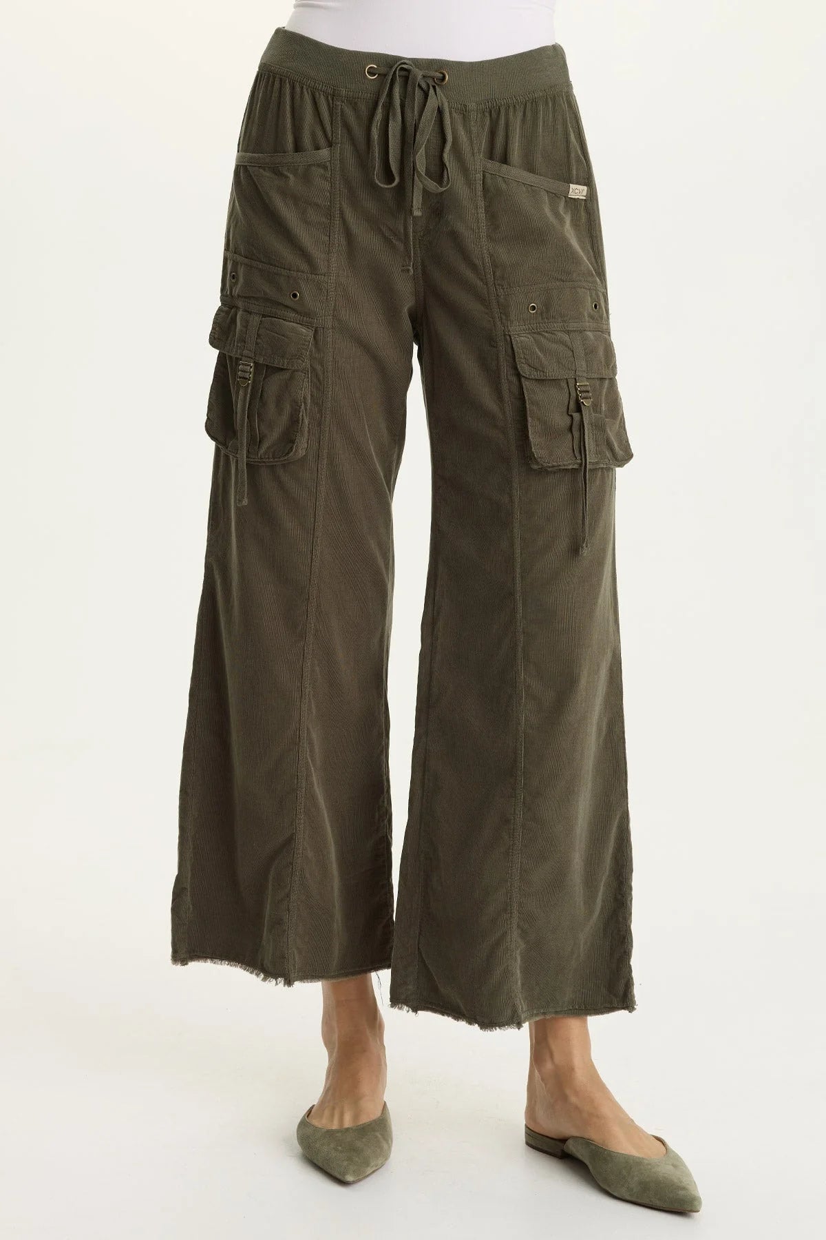 Heta Corduroy Wide-Leg Drawstring Cargo Pant
