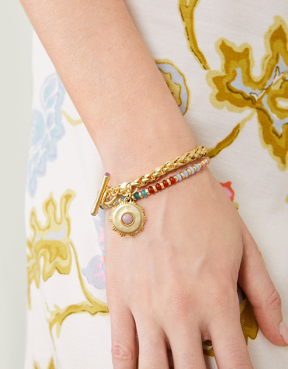 In fun summer hues, our 4mm Stone Stretch Bracelet will quickly be your go to bracelet. Featuring a mix of natural stones and 18kt matte gold plated metal beads. Please note: This design features natural stones and each piece is one-of-a-kind. Colors and patterns may vary slightly from the image shown.
