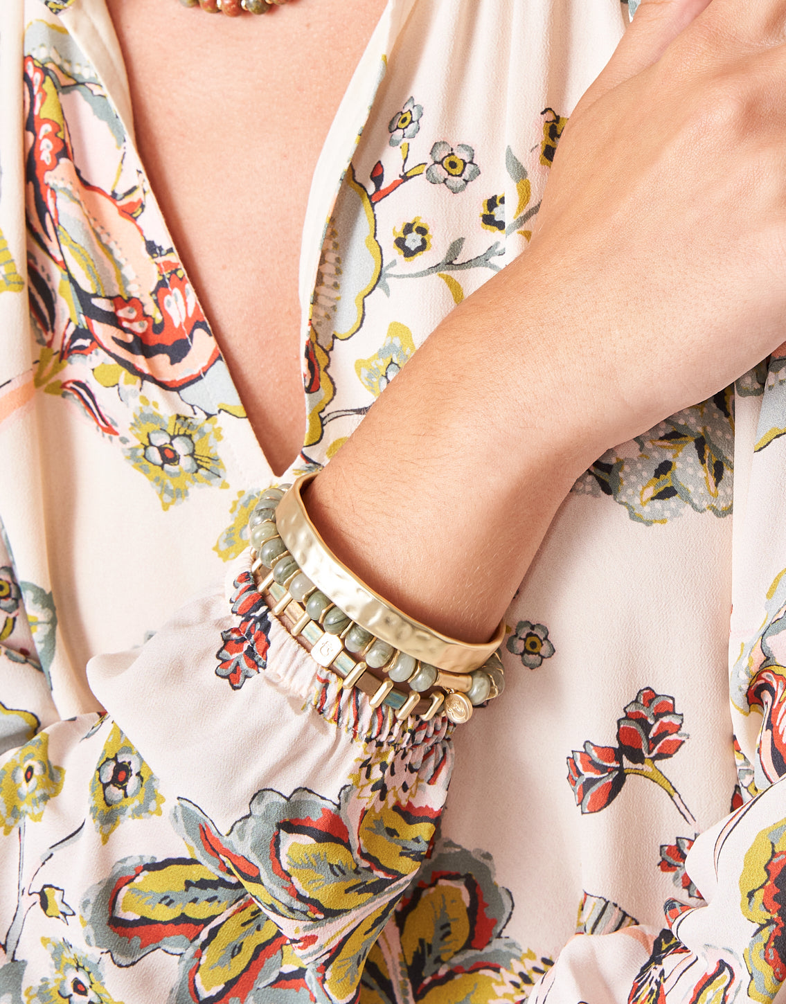 Warm fall reds and greens will quickly become your go to fall accessory in our Tila Stretch Bracelet. Our stretch bracelets are ready to fit any wrist and these bracelets look even better together. Faceted, smooth, charmed, big beads or bitty, stack them up for added style. Collect them all.