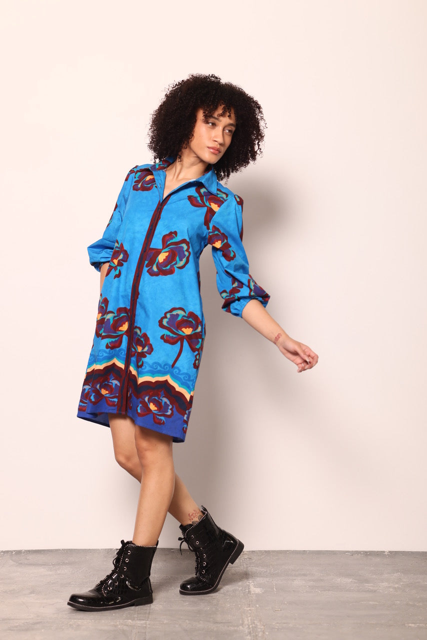 Step into vibrant charm with this bright blue dress featuring a cool floral design that brings fresh energy to your wardrobe. Its knee-length cut keeps things playful and perfect for day-to-night wear, while the long sleeves add a touch of elegance. This dress is your go-to for making a bold, fun statement wherever you go.