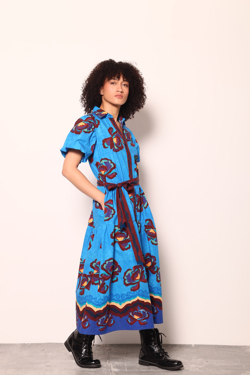 Step into sunshine with the Della Dress, featuring a bright blue hue and a beautiful floral design that turns heads. The belted waist adds a flirty touch while flattering your silhouette. Perfect for playful days out or garden parties, this dress brings cheerful charm to your wardrobe.
