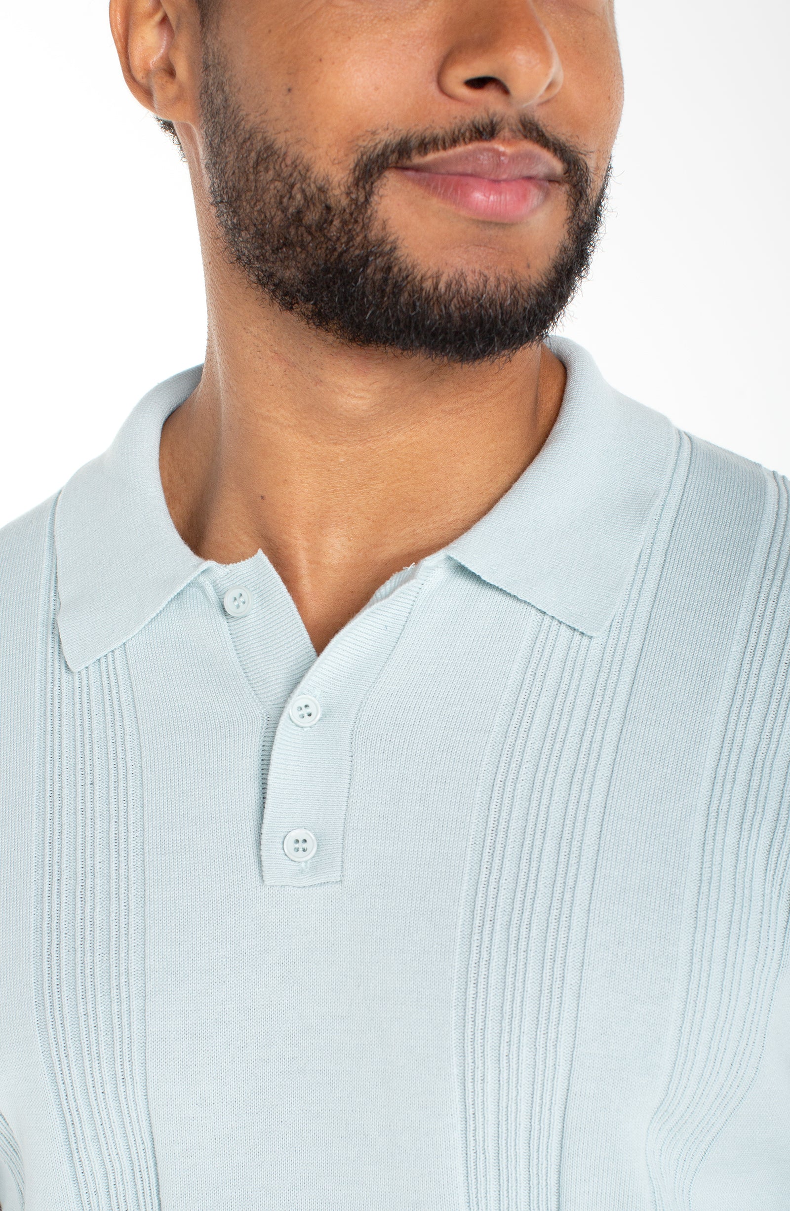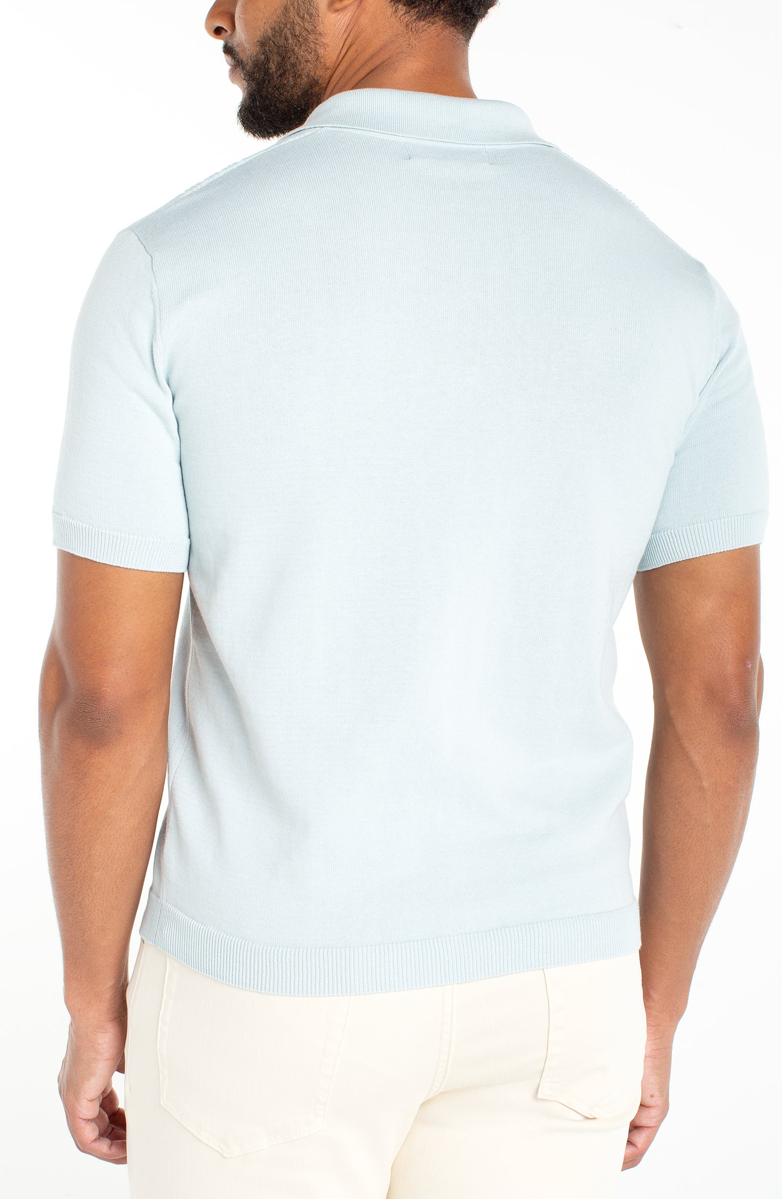 Crafted from soft cotton yarn, this short-sleeve sweater knit polo balances structure and comfort with a clean, modern finish. Designed with a button polo collar, ribbed hems, and subtle banding at the waist, it delivers a polished look that works styled on its own or layered for added dimension.