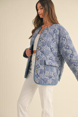 PAISLEY BANDANA PRINT QUILTED JACKET WITH POCKETS