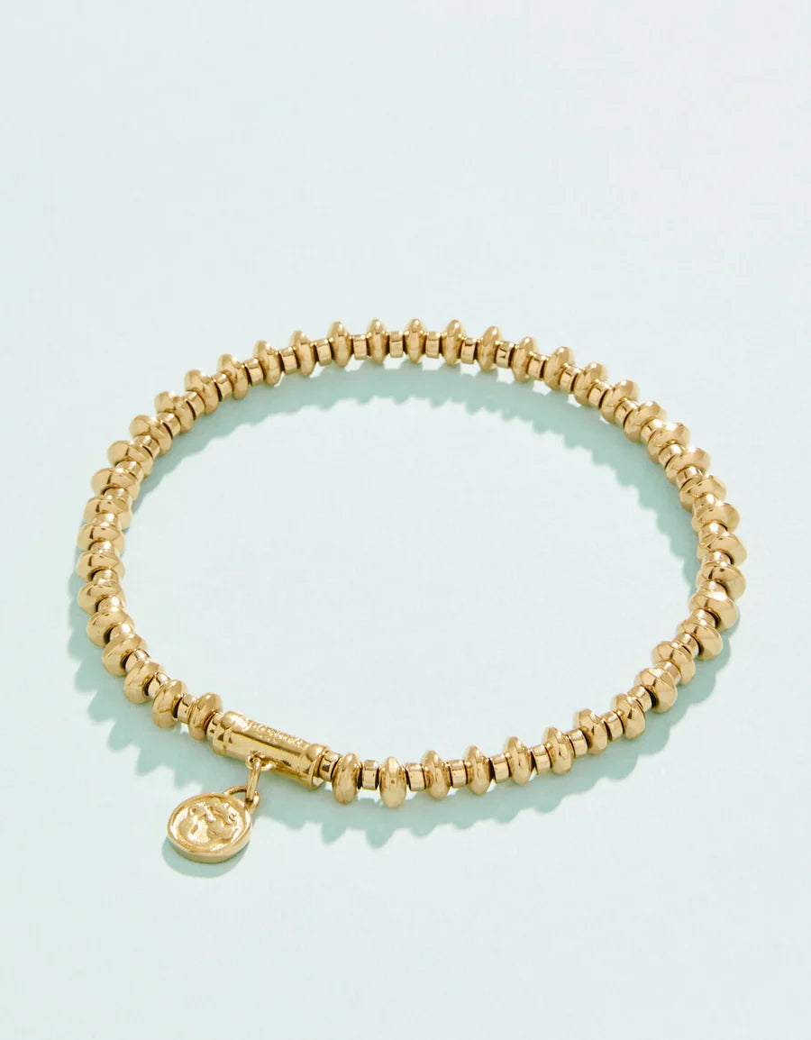 Here is a bracelet you will never have to take off! Great for stacking or mixing and matching this easy-on stretch bracelet features golden textured beads. Designed to shine through everyday wear, exercise, showers and a summer at the beach in tarnish free 14kt gold vacuum plating.