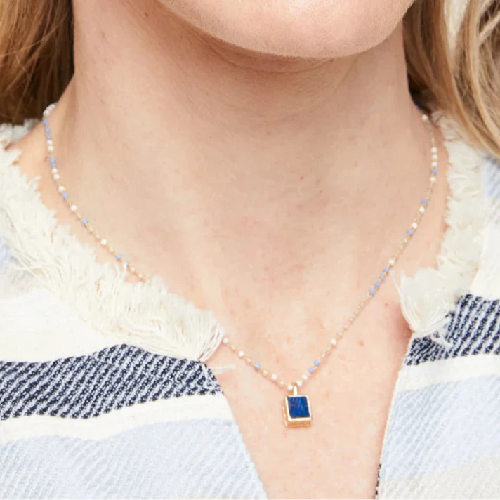 Perfectly petite, this glass beaded chain with an 18kt gold plated pendant was made with your dreams of spring style in mind. Accessorize your outfit with our Naia Petite Beaded Necklace! Please note: This design features natural stones and each piece is one-of-a-kind. Colors and patterns may vary slightly from the image shown.