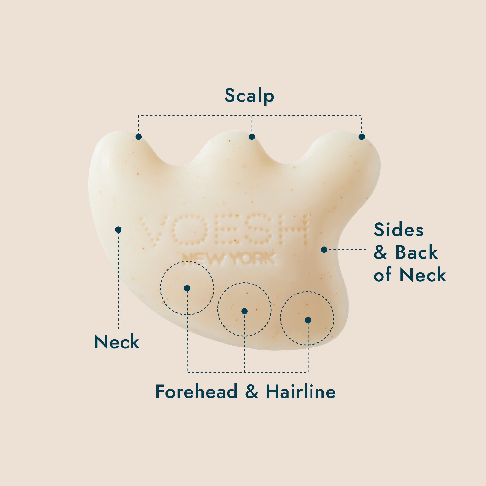 Lather your locks with love! Our Gua Sha Shampoo Bar provides a luxurious wash and soothing massage in one compact bar. With 97+% natural-origin ingredients, such as biotin, proprietary vegan probiotics, rosemary oil, and apricot seed powder, this vegan shampoo bar cleanses and nourishes from scalp to strand. With a unique ergonomic shape, our shampoo bar works wonders to stimulate hair follicles and encourage healthy hair growth.