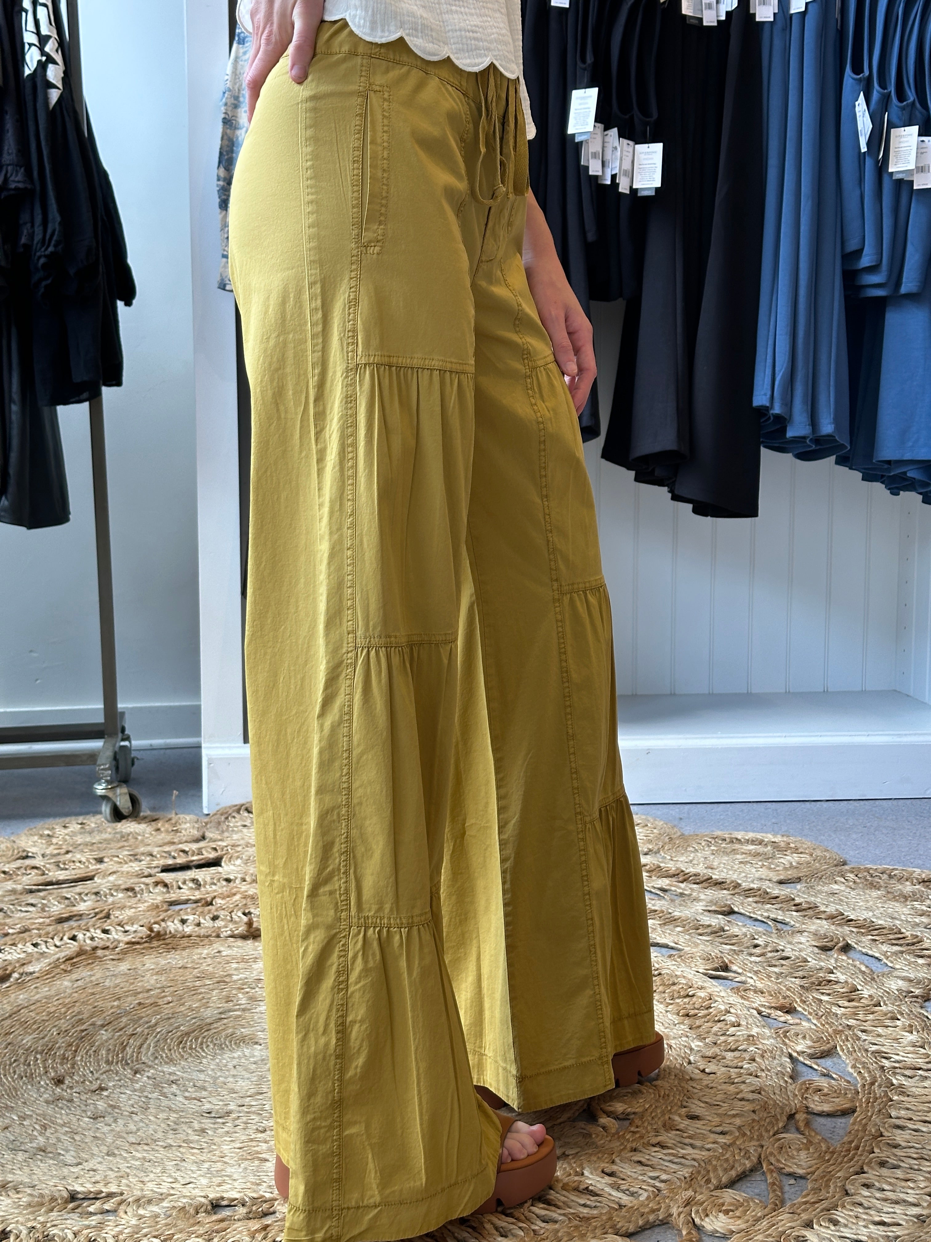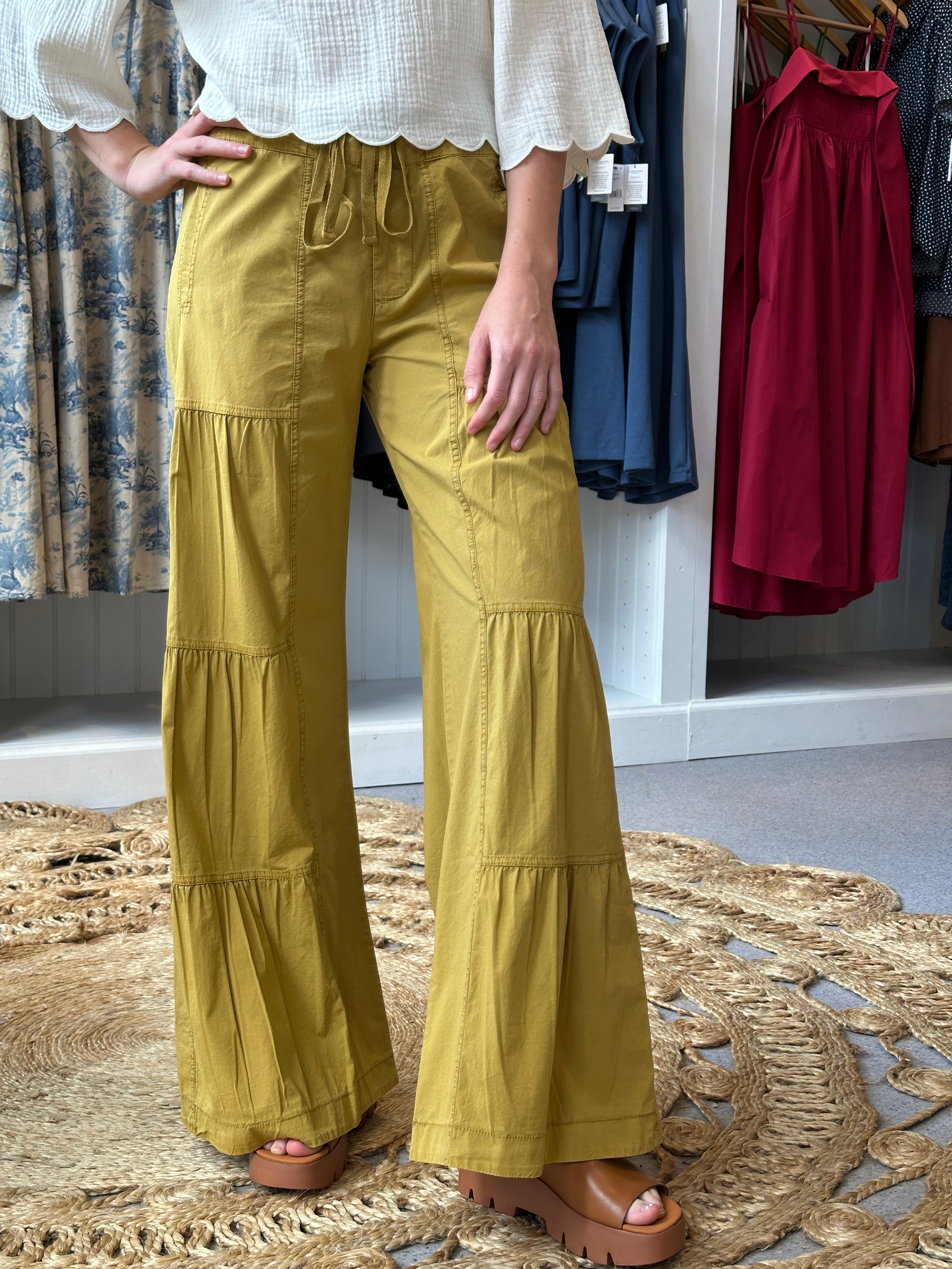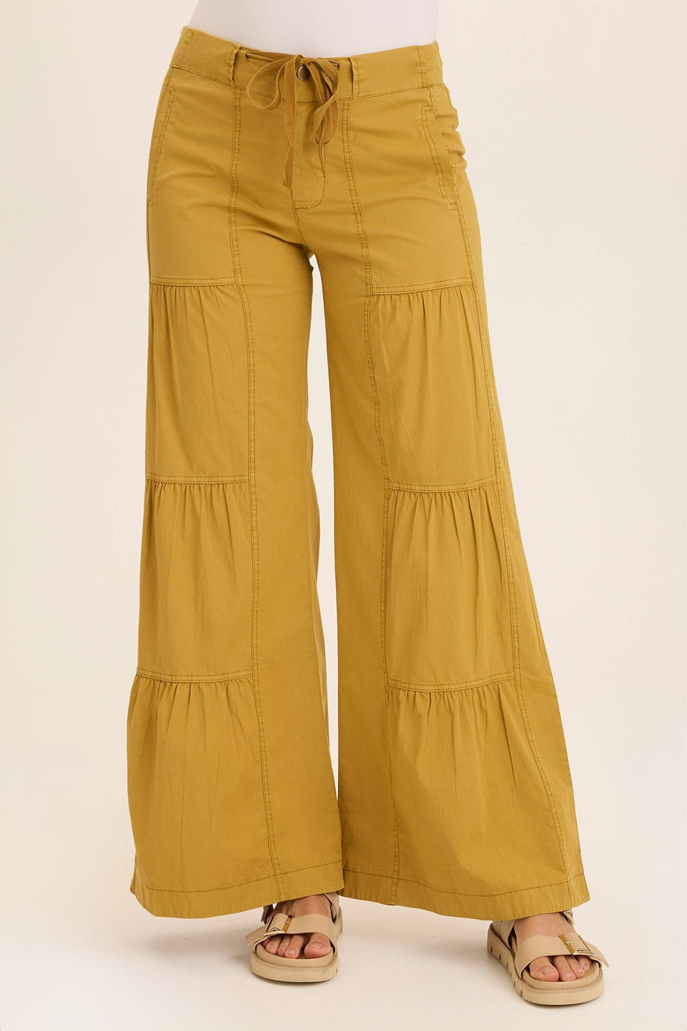 It's back by popular demand: our signature terraced ruched wide leg pant, with a flat drawstring waist, back elastic, zip fly and side seam pockets.