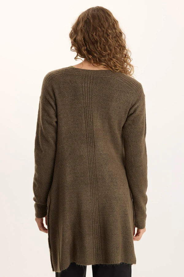 The ultimate cardigan has arrived! In our favorite plush sweater knit, this longline style is perfect for throwing over just about any outfit. Unexpected button details grace the back while cute, functional pockets make sure you can keep all your favorite things close by.