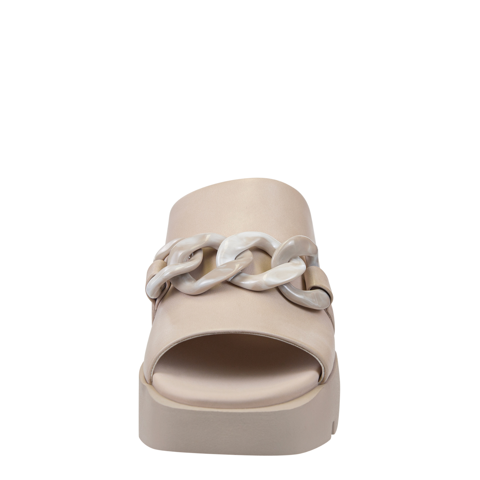 Making a statement was never so easy. Iso is the ultimate neutral platform leather sandal with a statement chain on Naked Feet's all new Fashion Light sole. Get volume without the weight and put your best fashion foot forward in a versatile leather slide that elevates every look.