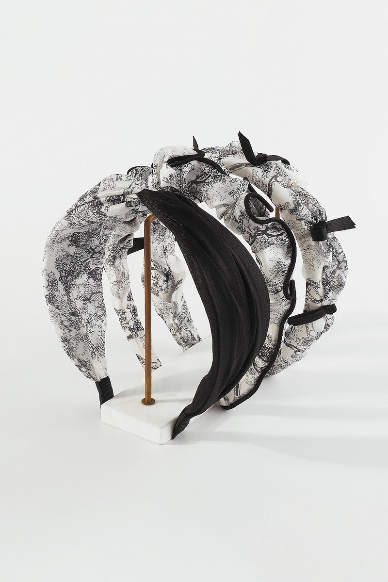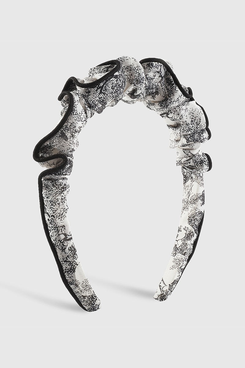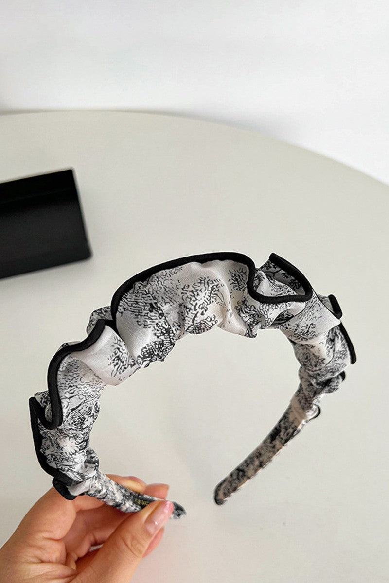 Add a splash of charm to any outfit with this playful black and white ruffled headband. Featuring a soft fabric and a delicate watercolor-inspired print, it’s perfect for keeping hair in place with a fun, flirty twist.
