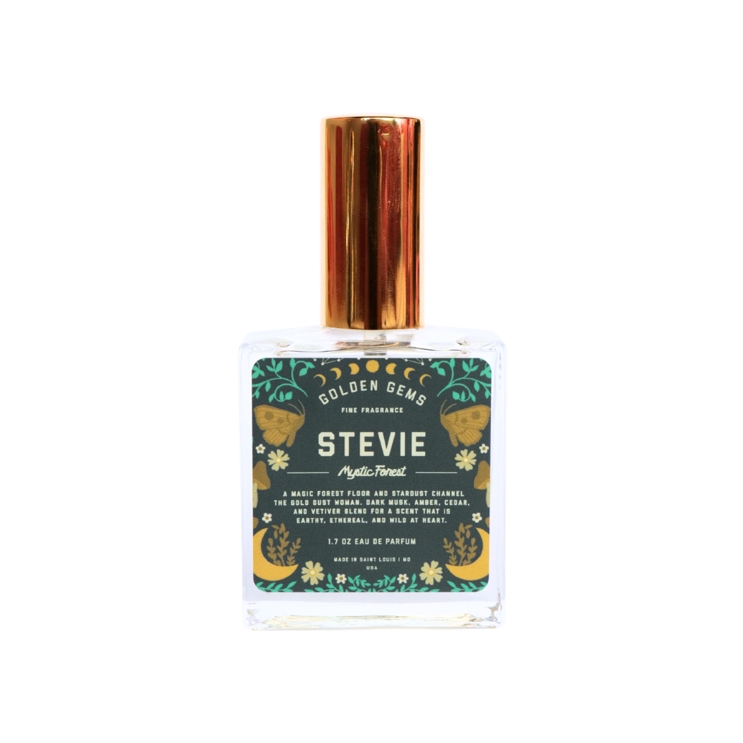 A magic forest floor and stardust channel the Gold Dust Woman. Dark musk, amber, cedar and vetiver blend for a scent that is earthy, ethereal and wild at heart.