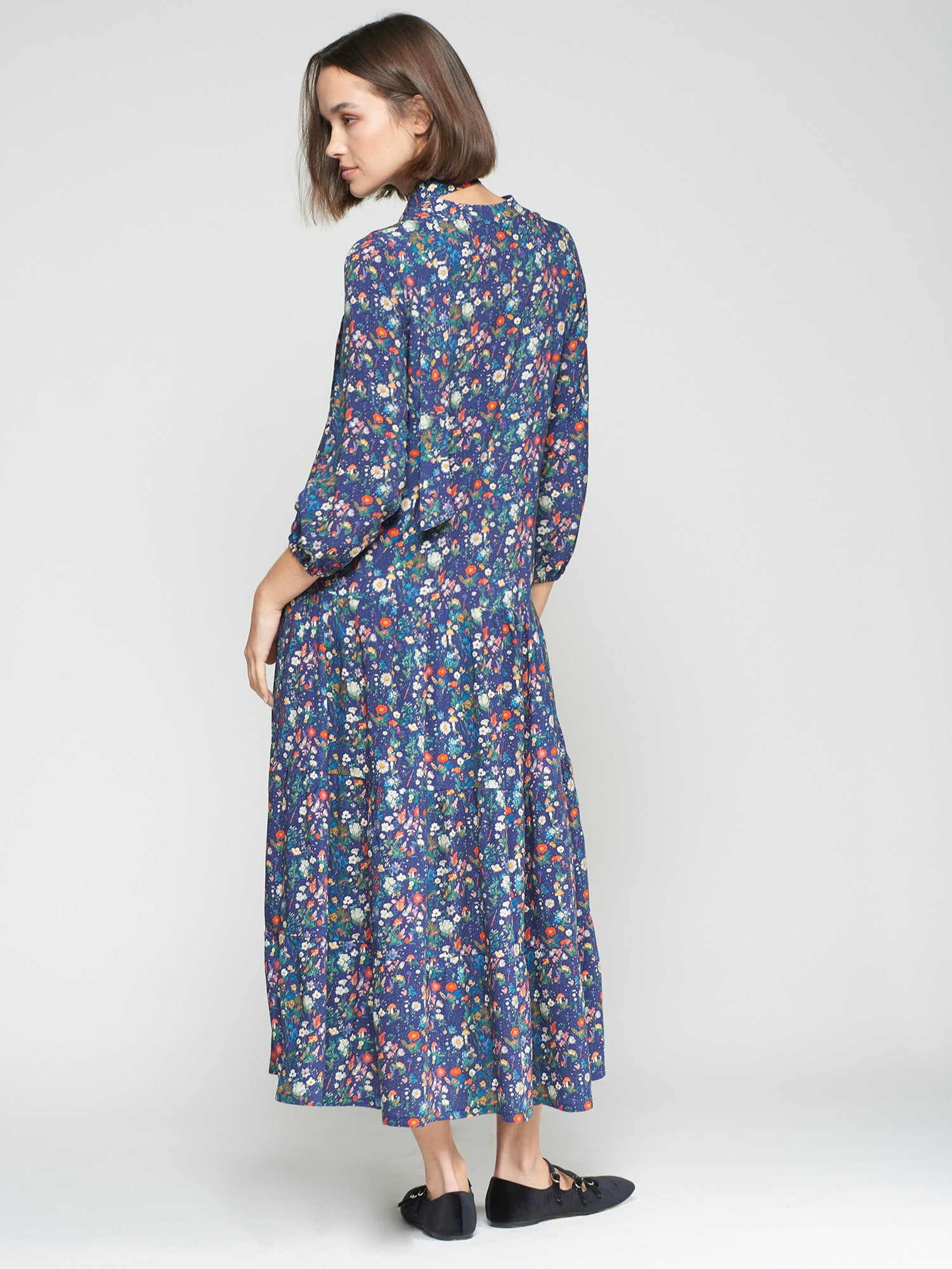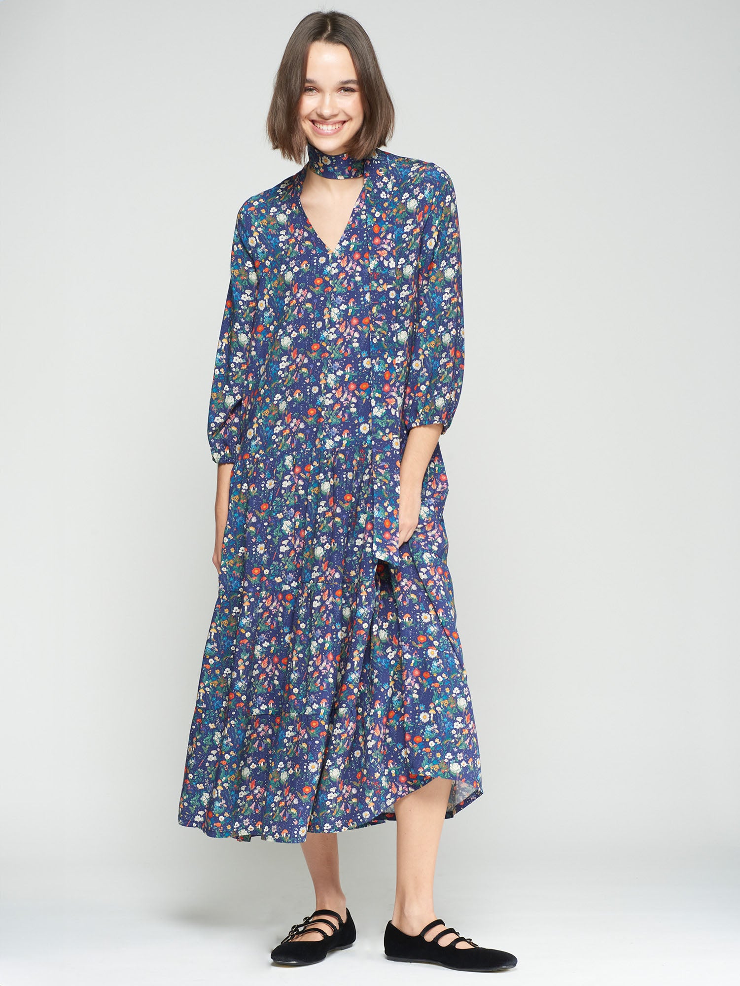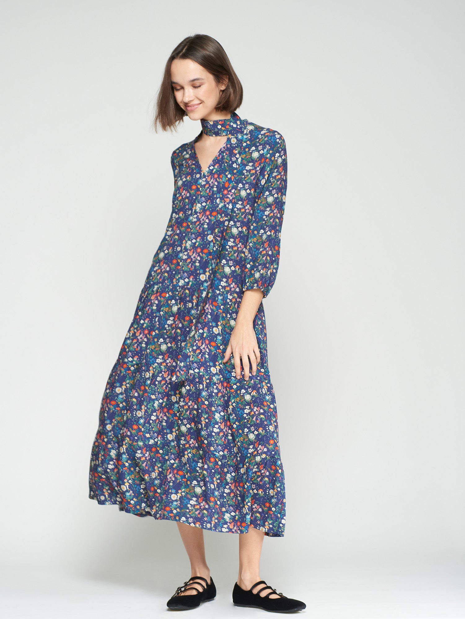 The Dahlia Floral Dress is a long, soft embrace of vibrant blooms that adds a playful splash of color to your day. Perfect for those who love to mix comfort with a touch of floral fun!