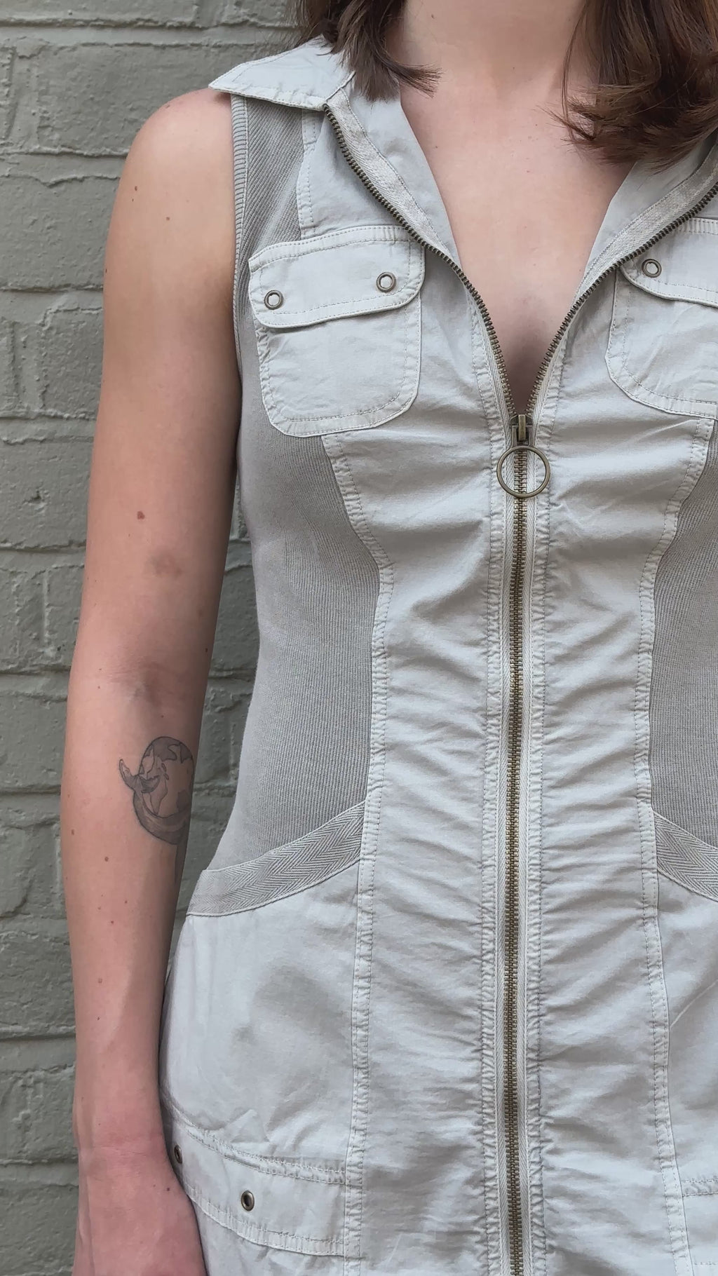 The Delmis Dress is a full zip-up collared tank dress with a sharkbite hem and rib inserts for comfort and flexibility. Also featuring two breast pockets and two in-seam pockets.